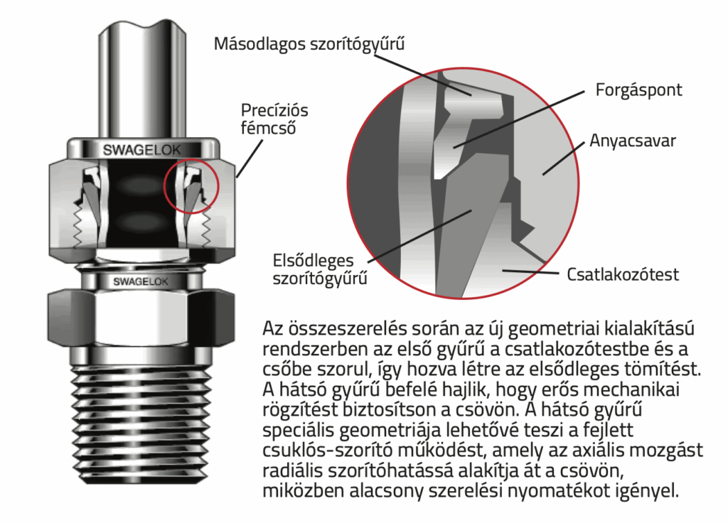 3. ábra: Duplavágógyűrűs csőcsatlakozás (Forrás: Gaugeable Tube Fittings and Adapter Fittings (MS-01-140;rev_AI;en-US;Catalog)