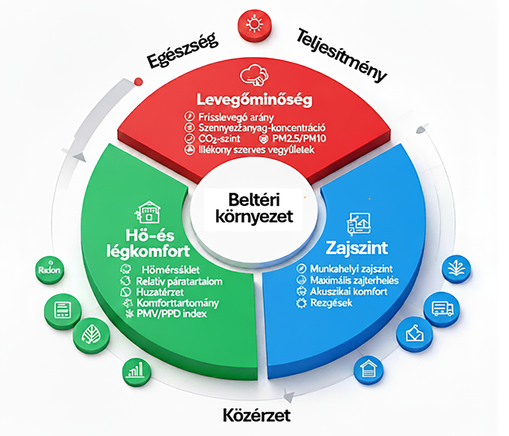 A modern épületgépészeti és építészeti gyakorlat szempontjából kulcsfontosságú megérteni, hogy a beltéri környezeti minőség három fő pillére – a levegőminőség, a hő- és légkomfort, valamint a zajszint – együttesen határozzák meg azt a környezetet, amelyben mindennapi életünk nagy részét töltjük. Az emberek átlagosan 90%-át életüknek beltérben töltik, ami különösen fontossá teszi ezeknek a paramétereknek a precíz szabályozását és folyamatos monitoringját.