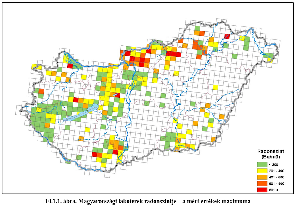 - Meglévő épületeknél radon mérés és szükség esetén utólagos mentesítés ajánlott, ha a koncentráció meghaladja a referencia szintet.