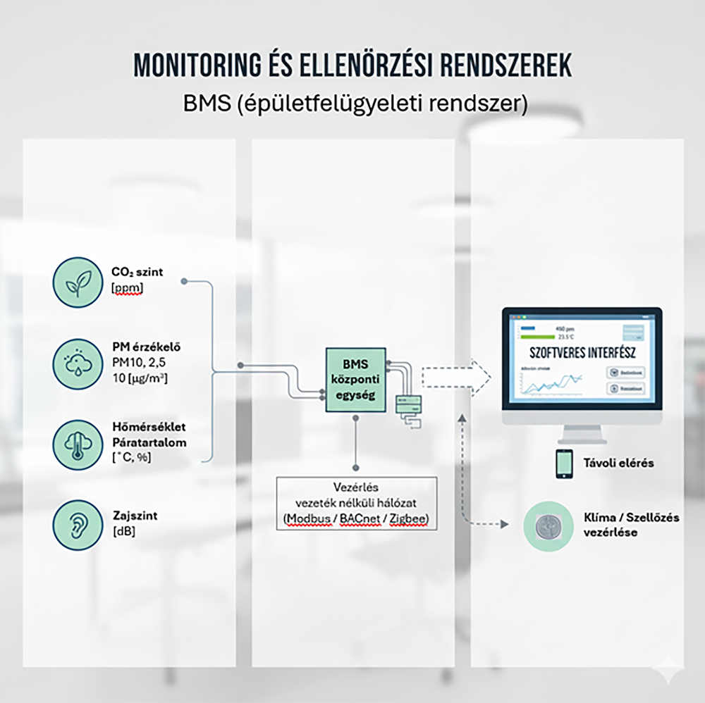 A modern épületgépészeti rendszerek egyre inkább integrálják a környezeti paraméterek folyamatos monitoringját: