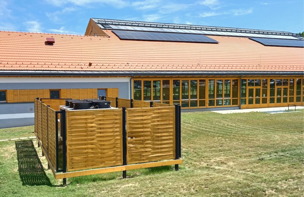 Az esettanulmányok között bemutatta a több tanuszodánál (Zirc, Vecsés, Kisbér, stb.) komfort hűtésre és fűtésre alkalmazott megoldásukat. Itt 180kW-os EUROKLIMAT HERA R290 hőszivattyúk kerültek beépítésre. A tervezett vízhőmérsékletek fűtésre +52oC (tk=-13oC), hűtésre és párátlanításra pedig +5 oC (tk=+35oC). A hőszivattyú -20oC és +45 oC külső hőmérsékletek között működőképes. A propántöltet mennyisége 6,5 kg/hűtőkör, aminek a széndioxid-egyenértéke 0,041 tonna/gépegység. Az R410A-val szembeni megelőzött kibocsátás pedig 65 tonna CO2/gépegység.