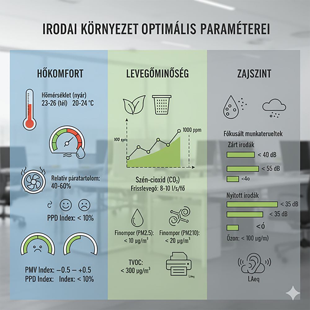 Az irodai munkahelyek környezeti paramétereinek szabályozása összetett rendszert alkot, amely a hagyományos munkavédelmi előírások és a modern épületgépészeti standardok metszéspontjában helyezkedik el.