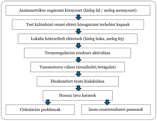 A folyamatos vagy ismétlődő aszimmetrikus hősugárzásnak kitett személyeknél számos krónikus egészségügyi probléma alakulhat ki. A kutatások kimutatta, hogy a tartós hideg felületek közelében tartózkodás cirkulációs zavarokat okozhat a végtagokban.
