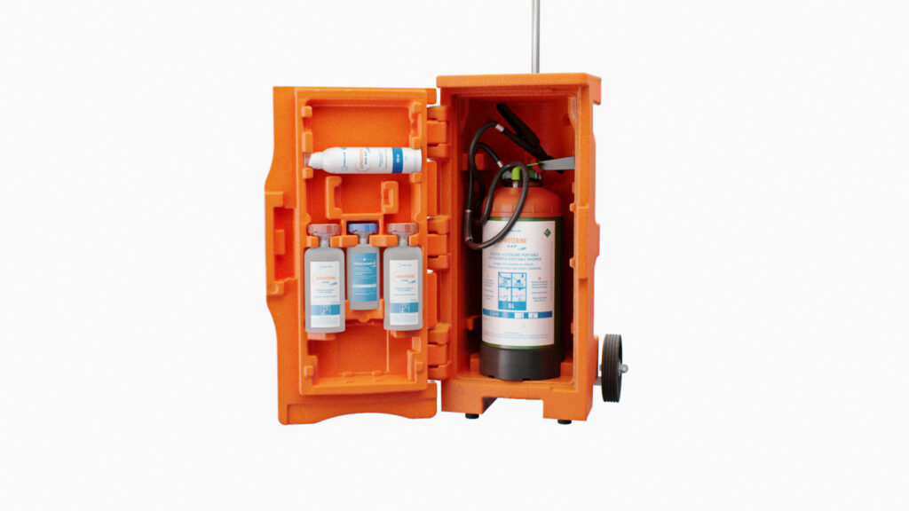 - A Diphoterine® megoldása: Autonóm, fagyvédett szekrényben elhelyezett Diphoterine® egységek telepíthetők bárhová, vízvezeték-kiépítés nélkül. Ez drasztikusan növeli a tervezői szabadságot (flexibilitást).