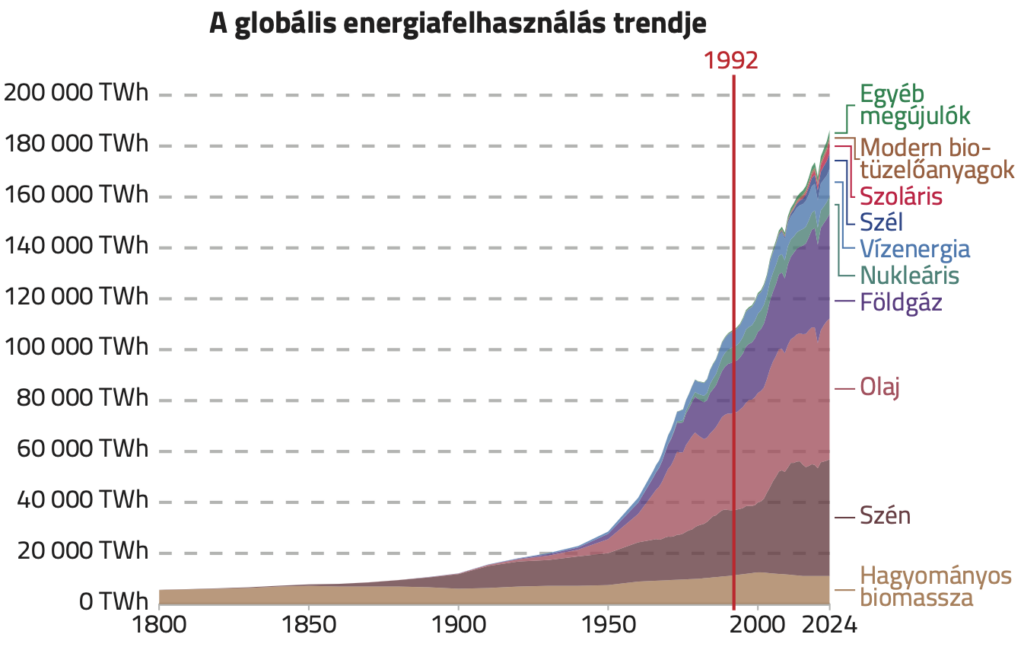 A dekarbonizációt 1992-ben határoztuk el. Azóta a szén-dioxid-kibocsátás nemhogy csökkent volna, hanem 67%-kal nőtt, a fosszilis energia aránya pedig az 1980-as 85%-ról napjainkra mindössze három százalékponttal 82%-ra csökkent.