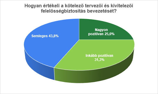 A válaszadók többsége úgy látja, hogy a kötelező felelősségbiztosítás növeli a megbízhatóság érzetét a tervezőkkel és kivitelezőkkel szemben, javítja az ügyfelek és partnerek bizalmát. Az ÉVOSZ szerint ez egy nagyon erős, a rendszer legitimitását alátámasztó jelzés. A válaszadók közel fele személyes szakmai védelmet lát a biztosításban, negyedük szerint pedig hozzájárul a nem megfelelő piaci szereplők kiszorulásához, a minőségjavuláshoz.