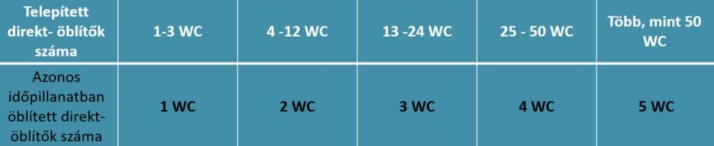 Mivel egy öblítés mindössze 6 másodpercet vesz igénybe, és nincs utántöltődési idő, számos WC esetén is minimális az esély az egyidejű használatra. Ezzel szemben egy tartályos rendszernél az akár 40-60 másodperces utántöltődés miatt már 2 darab WC esetén is jelentős az egyidejűség esélye.